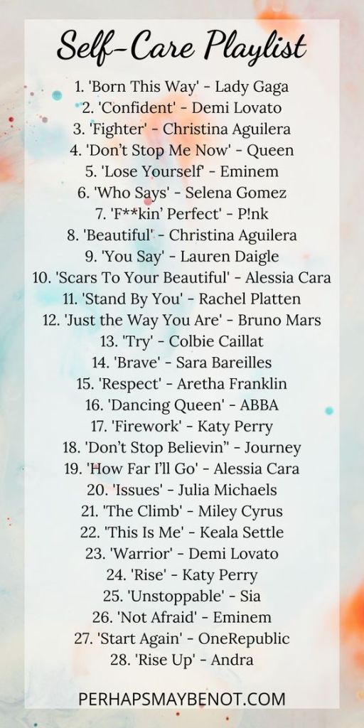 Self Care Playlist We’ve all got those favorite songs that lift our spirits – but have you tried these? pic via pinterest