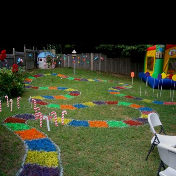 Use spray paint to prep your grassy areas for your next party – This is so fun! Don’t forget to add several junctions to indicate the special areas just like in the real board game!